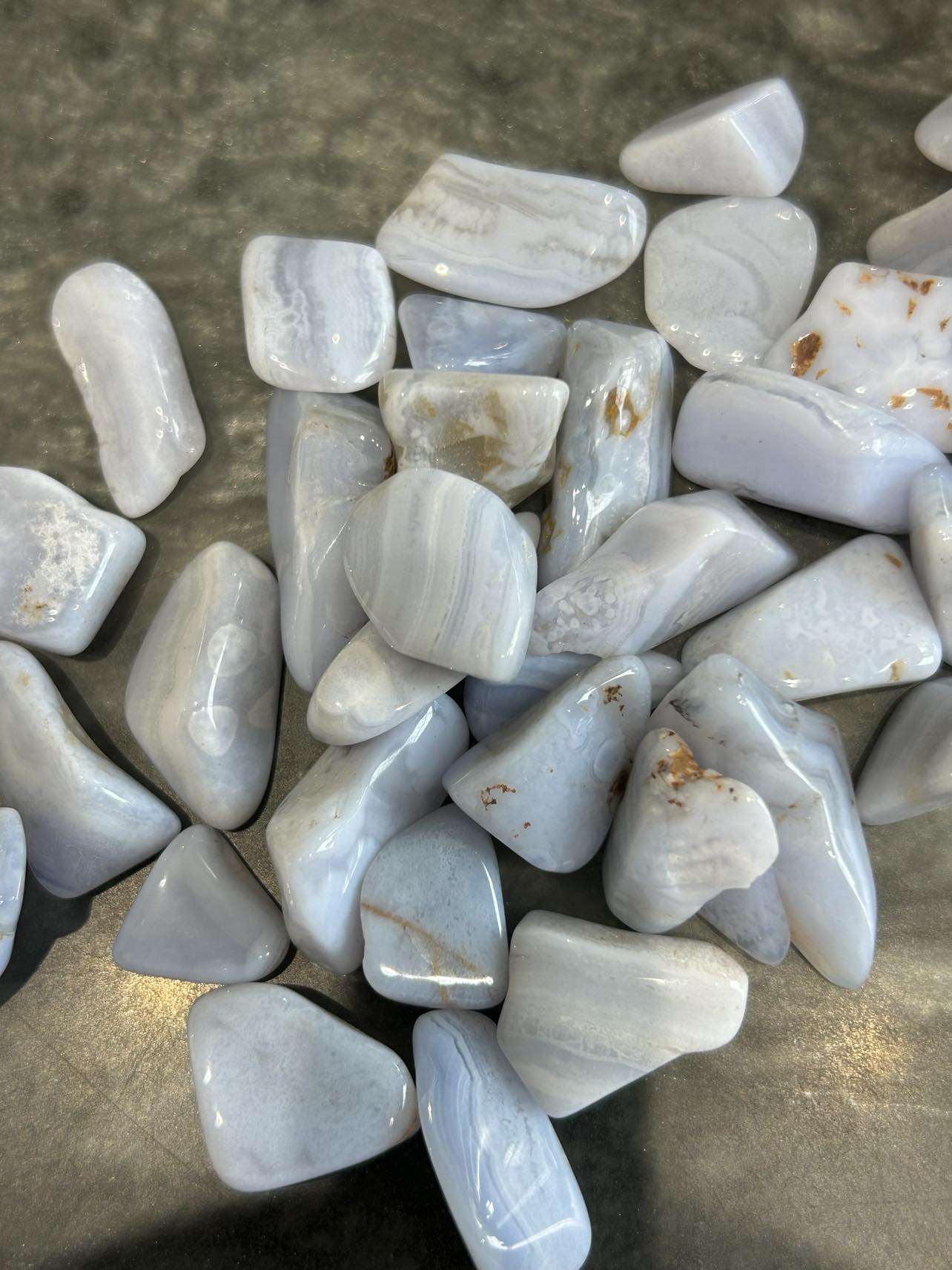 Blue lace agate is a light blue variety of chalcedony that is believed to have many benefits. According to AllCrystal, blue lace agate offers the following benefits: positive emotions, spiritual truth, enhanced communication, release, peace and good health. According to Crystal Vaults, blue lace agate counteracts the repression and suppression of feelings caused by past fears, judgments or rejections. It dissolves old blockage patterns and doubt and permits new methods of self-expression and growth. Blue Lace Agate is especially beneficial in helping men realize and accept their feelings and sensitivities. Blue lace agate is also a great stone to use in complement with other traditional therapies for physical relief. As a result of its connection with the throat chakra, this gemstone is often used to help reduce sore throats or voice problems.