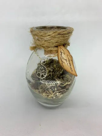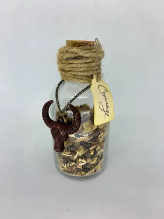 Courage: The need for mental or moral strength to venture out and do something that can be terrifying to you, is why we all need courage. The many ingredients combined in these bottles include Oak Moss and Frankincense components that bring strength and power to this recipe. Crystals/Stones included in the large and extra-large bottles may contain Obsidian, Tiger’s eye, or Agate.