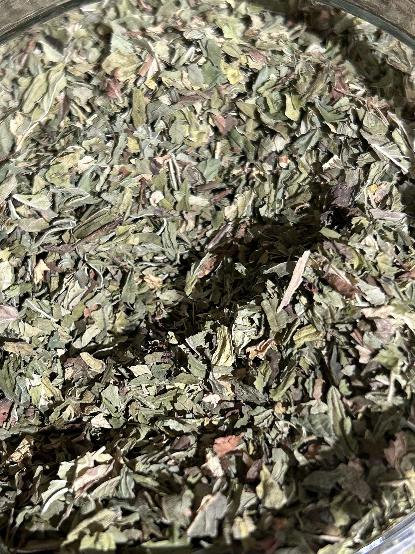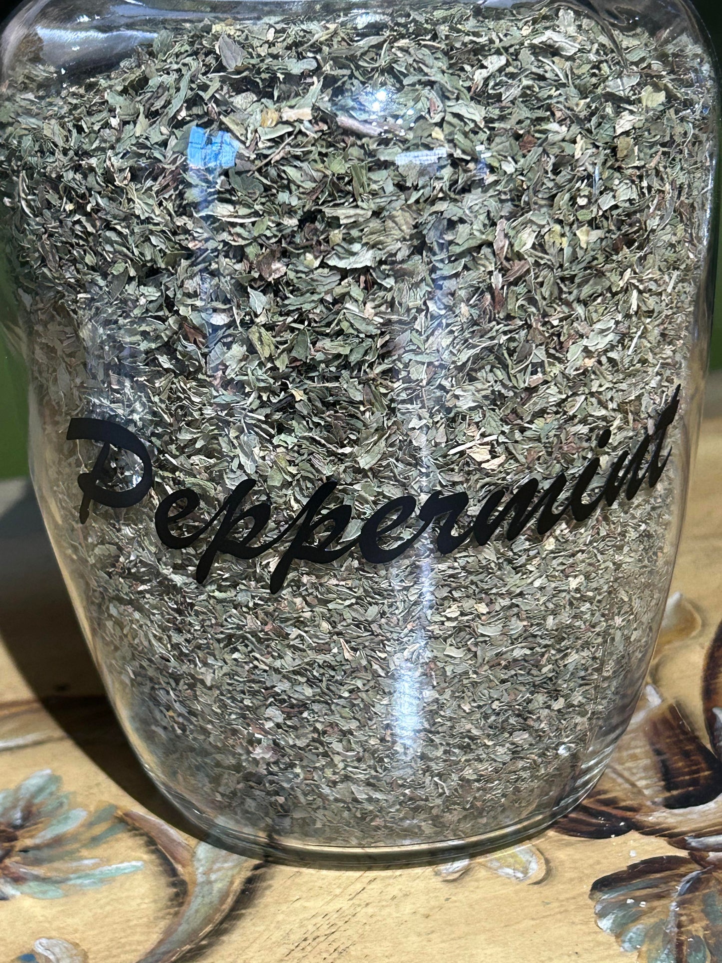 Peppermint is a strongly aromatic perennial herb of the mint family. It has a strong sweetish odor and a warm pungent taste with a cooling aftertaste. The leaves are typically used fresh as a culinary herb, and the flowers are dried and used to flavor candy, desserts, beverages, salads, and other foods