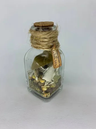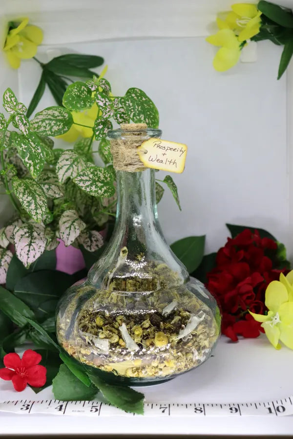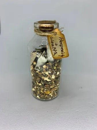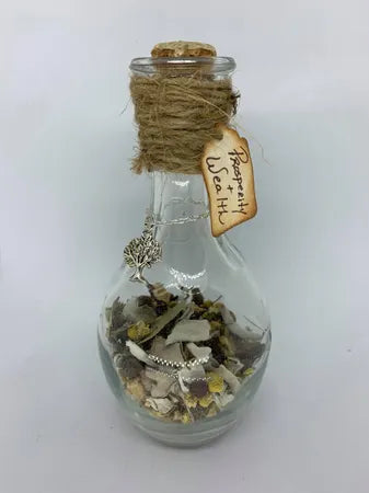 Prosperity and Wealth: Herbs and spices used are those that protects against financial misfortune, leading you to your treasure. There are also components that guard against poverty and brings riches and luxury. The large and extra-large bottles may contain Jade, aventurine and/or citrine.