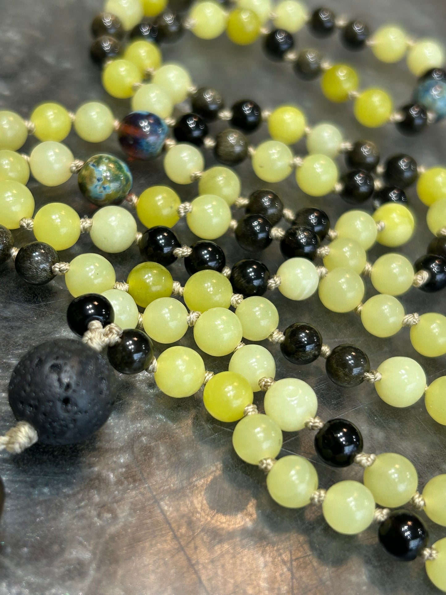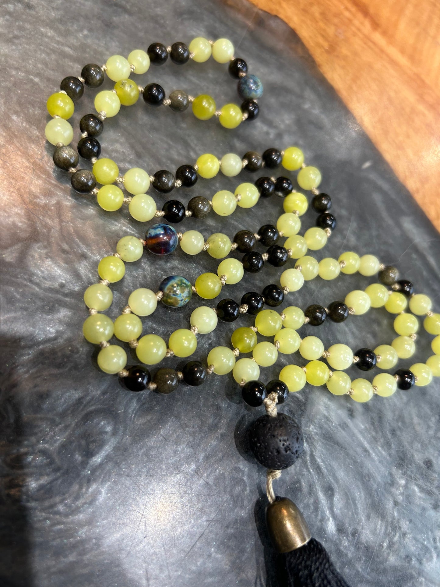 Mala necklaces are strands of beads , usually made from gemstones, wood or seeds traditionally used in meditation practices. They typically consist of 108 beads. Which hold spiritual significance in Hinduism and Buddhism. The beats are used to count breaths or mantra repetitions during meditation. Typically the 109th bead, called the guru bead, signifies the end or beginning of a meditation session. Mala necklaces can also serve as a reminder of intentions or affirmations. Choosing a Mala often involves selecting materials with properties that align with one’s intentions or spiritual goals