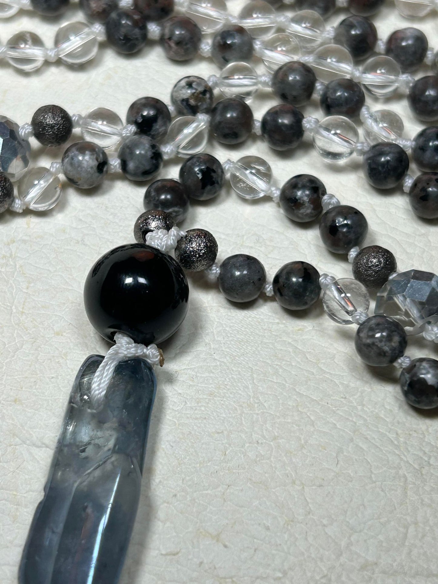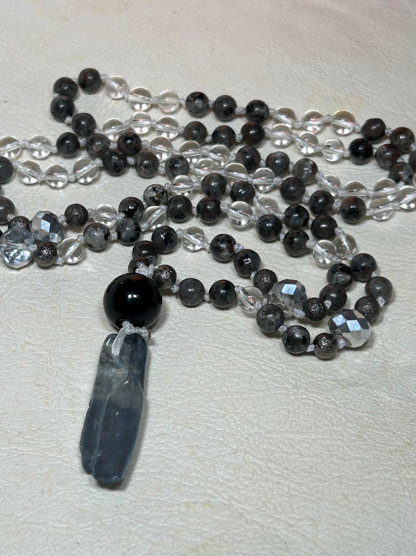 Mala necklaces are strands of beads , usually made from gemstones, wood or seeds traditionally used in meditation practices. They typically consist of 108 beads. Which hold spiritual significance in Hinduism and Buddhism. The beats are used to count breaths or mantra repetitions during meditation. Typically the 109th bead, called the guru bead, signifies the end or beginning of a meditation session. Mala necklaces can also serve as a reminder of intentions or affirmations. Choosing a Mala often involves selecting materials with properties that align with one’s intentions or spiritual goals.